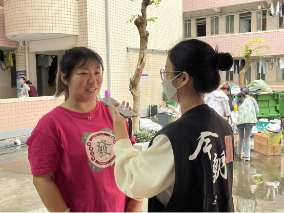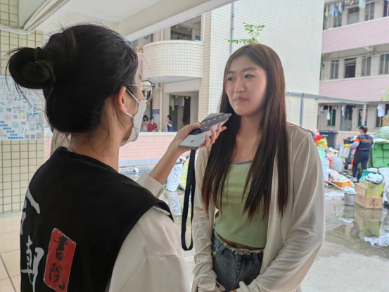 A:我们主要是对接6楼的一个女生宿舍,帮她们把大件行李搬到待搬区域。比如,已经准备好的行李箱、行李袋以及大件的洗衣机等。
